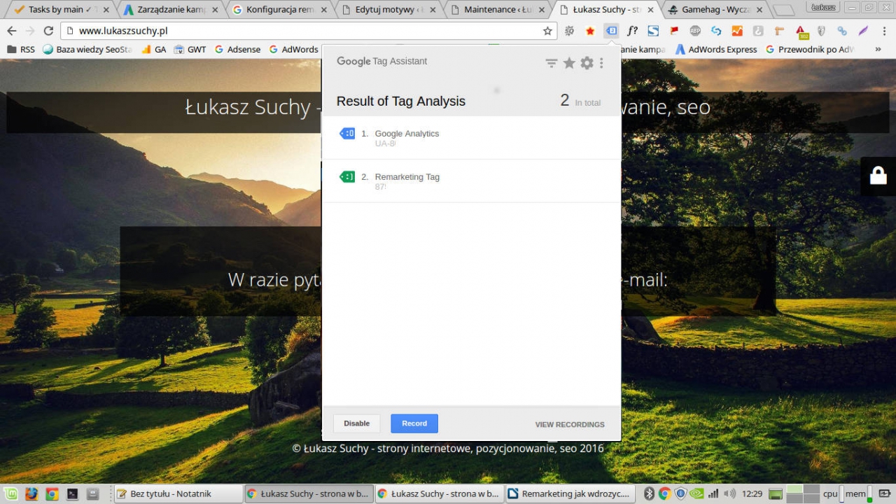 Po tym jak umieścisz kod remarketingowy w swoim serwisie polecam sprawdzić, czy faktycznie się on tam znajduje. Możesz zrobić to ręcznie, sprawdzając kod źródłowy Twojego serwisu i wyszukując wrzucony kod lub wykorzystać Google Tag Assistant – który pokaże Ci wszystkie aktywne kody w obrębie serwisu: