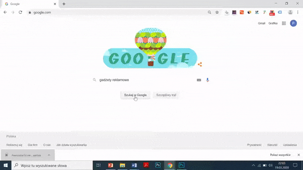 Przykład użycia Keyword Surfer na hasło gadżety reklamowe.