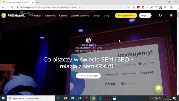 Przykład użycia WhatRuns na blogu Freshmail.