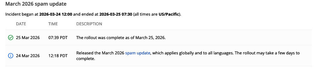 Źródło: https://news.opositive.io/google-algorithm-update/march-2026-spam-update-completed/